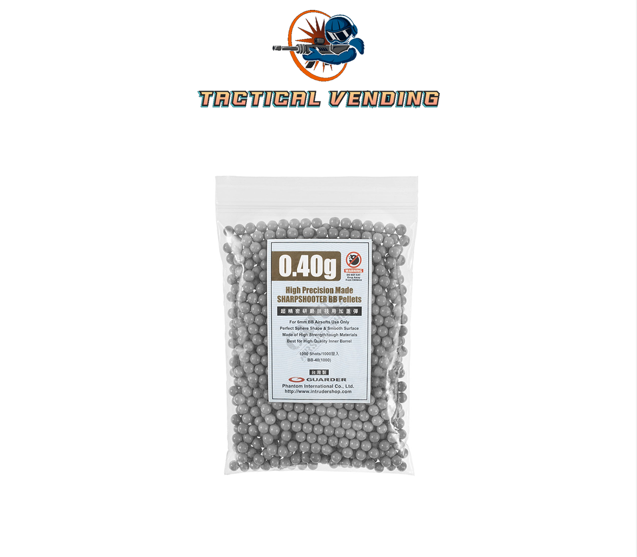 1000 bbs de cor cinza, de alta precisão. A cor zinza torna mais dificil detectar a bbs enquanto atravessa o ar.
